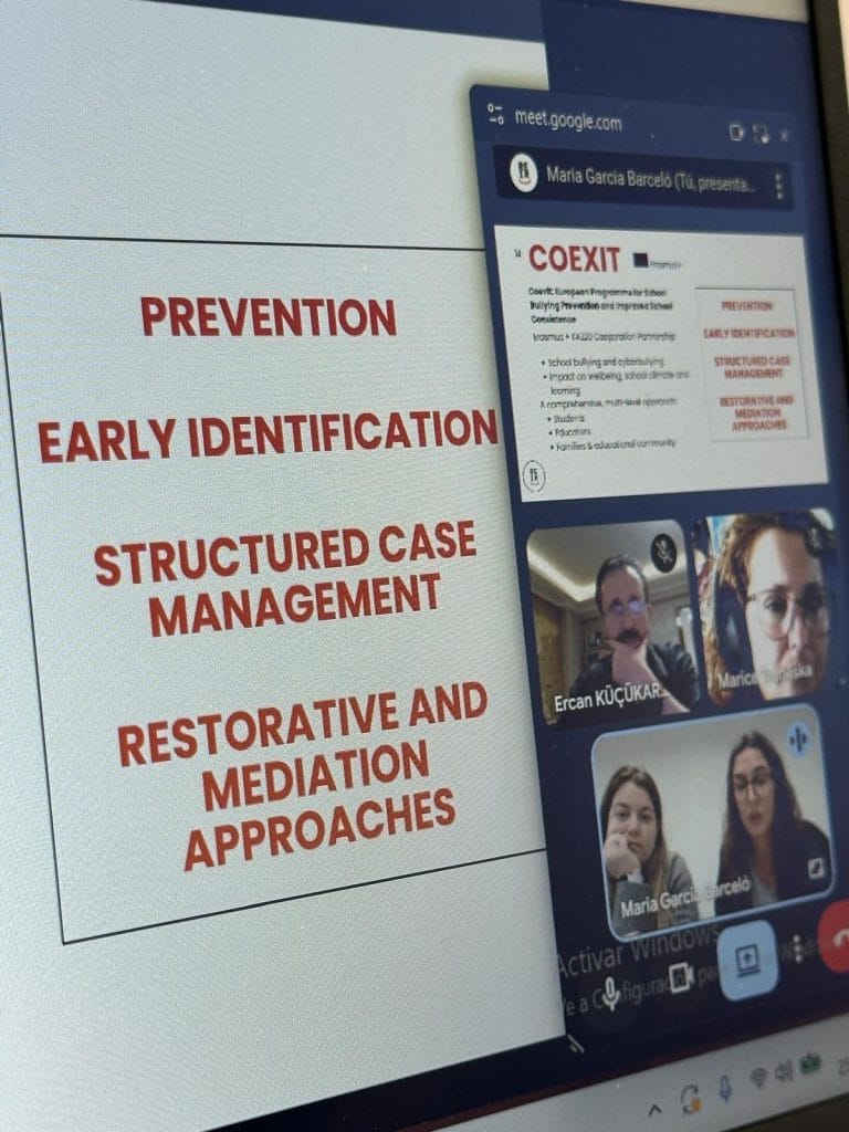Gràcies a aquesta primera reunió del projecte COEXIT d’Erasmus+, hem establert una estructura de treball comuna. A partir d’ara, les entitats començarem a desenvolupar accions coordinades orientades a la prevenció del bullying i el ciberbullying en entorns educatius.